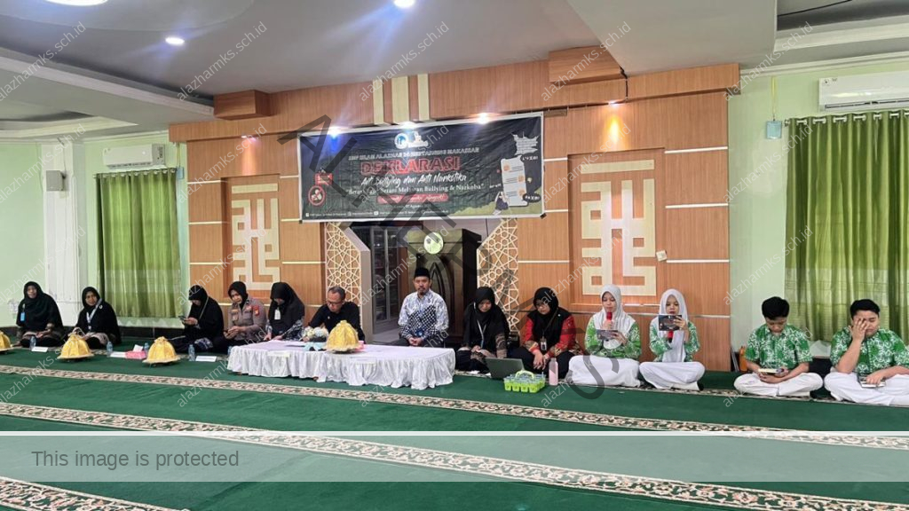 SMP Islam Al Azhar 24 Hertasning Makassar kembali menunjukkan komitmennya dalam menciptakan lingkungan sekolah yang aman, nyaman, dan berkarakter. Pada hari ini, SMP Islam Al Azhar 24 Hertasning menggelar sosialisasi intensif mengenai anti-bullying dan anti-narkotika dengan menggandeng pemateri ahli dari Polrestabes Makassar.