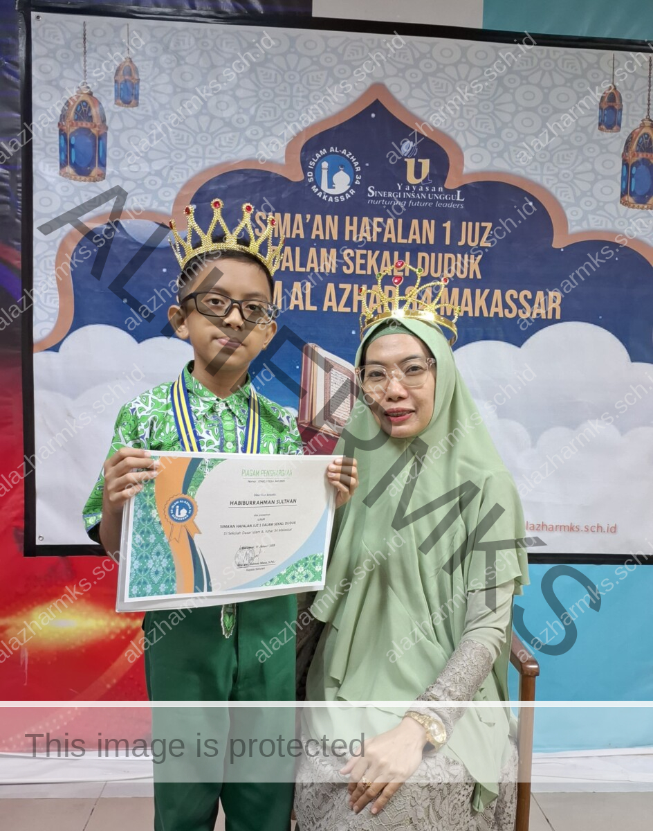 SD Islam Al Azhar 34 Makassar kembali mencatatkan prestasi membanggakan melalui salah satu murid terbaiknya, Habiburrahman dari kelas 6B Ar Raafi', berhasil menyelesaikan simaan tiga juz Al-Qur'an, yaitu Juz 1, Juz 29, dan Juz 30.